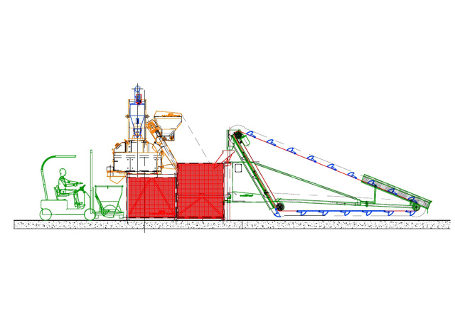 - Granulats pesés dans le skip avec nr. 3 capteurs électroniques
